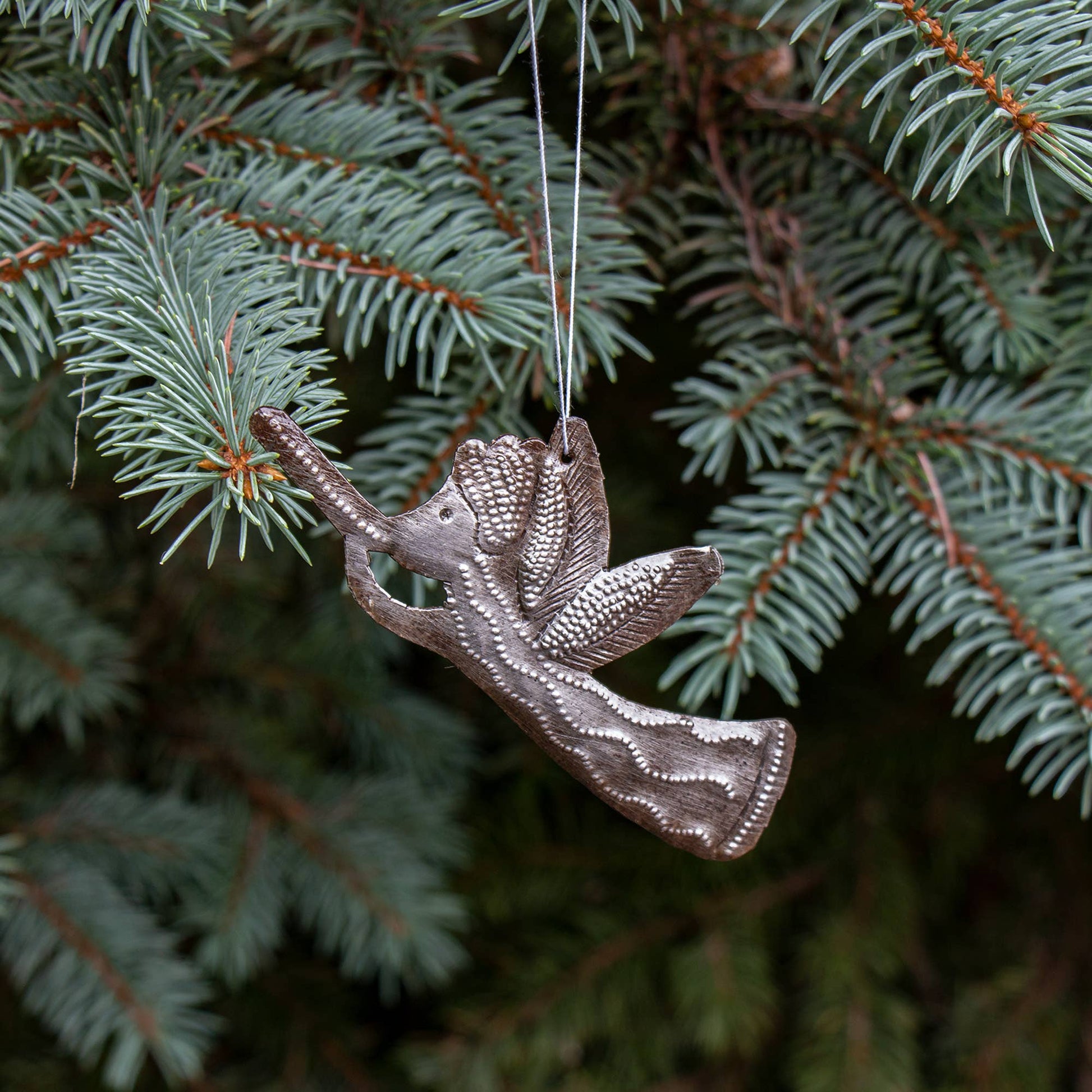 Angel with trumpet Haitian metal drum ornament (4" x 2"). This angel decoration is handmade in Haiti from scrap steel drums. It is light enough to hang well on a tree and keep Haiti in mind during the holiday period, the angel is 2 inches tall and 4 inches wide, includes hanging loop.Keywords: Home Décor, Gifts , Tabletop, ornament, holiday
