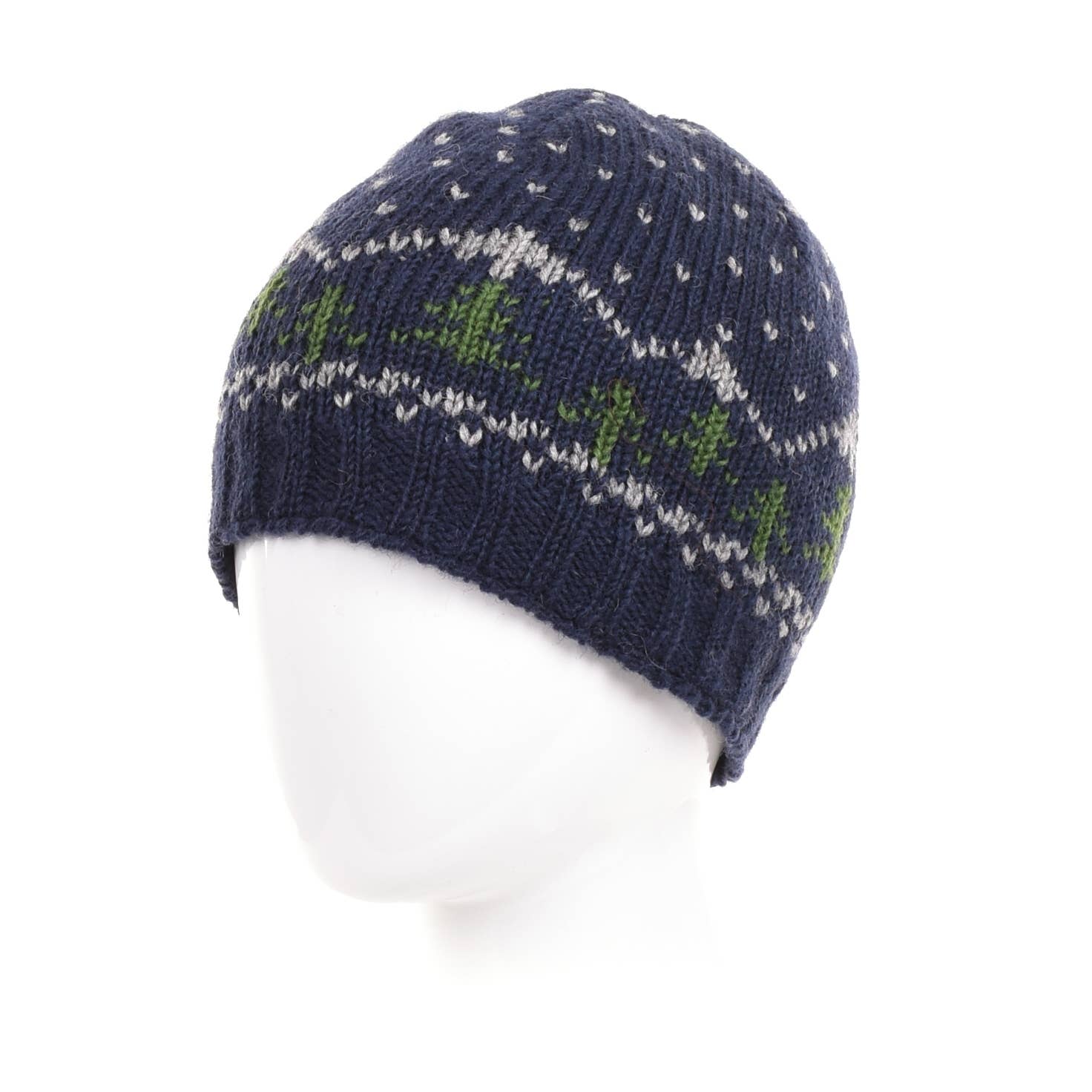 Appalachian Beanie Hat – Knit Wool with Forest Motif: Medium natural