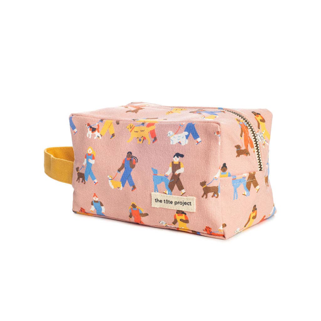 This cosmetic bag is everything! Designed with a colorful, whimsical print for the dog lover from artist Eleonora Arosio -- our newest bag is fair trade, fun, and impactful. 10% of the profits from every sale are donated to support anti-human trafficking initiatives.