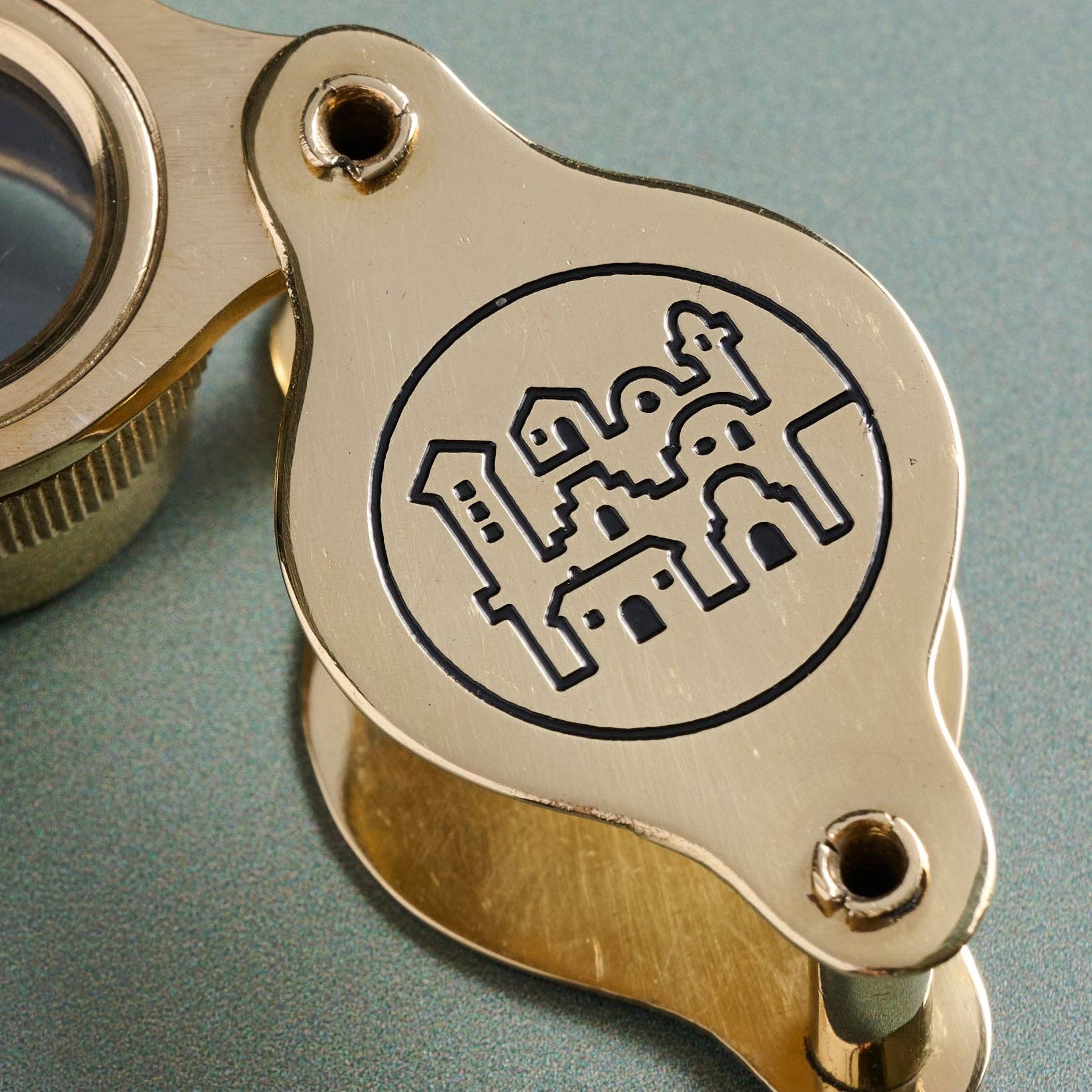Keep this folding magnifier in your pocket to more easily read menus, newspapers, books and more. Handmade from brass with a 2.5x magnification rate, this loupe is etched with the striking Ten Thousand Villages logo and compactly folds making it easy to carry in a pocket or purse. A perfect gift! A Ten Thousand Villages Exclusive handcrafted by artisans with Noah's Ark in India. Noah's Ark continues its work, training artisans to use alternative metals, source recycled materials and to create innovative designs grounded in traditional methods.