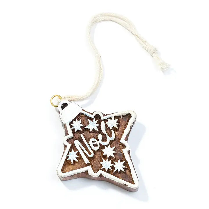 Our Hima Bindu Ornament Collection combines the art of traditional Indian wood craft with festive holiday designs, featuring solid wood block ornaments with a snow-kissed white rub finish. Artisans use hand tools to skillfully carve blocks of sustainably harvested wood into blocks which are dipped in dye and carefully applied to textiles by hand to create stunning block printed patterns. Traditional Indian wood craft requires mastery, passed on thru generations, to create the intricate carvings and refined finish. Dimensions: 3" L x 2.5" W x 0.5" H All of Matr Boomie's collection is handmade, fair trade and sustainable.