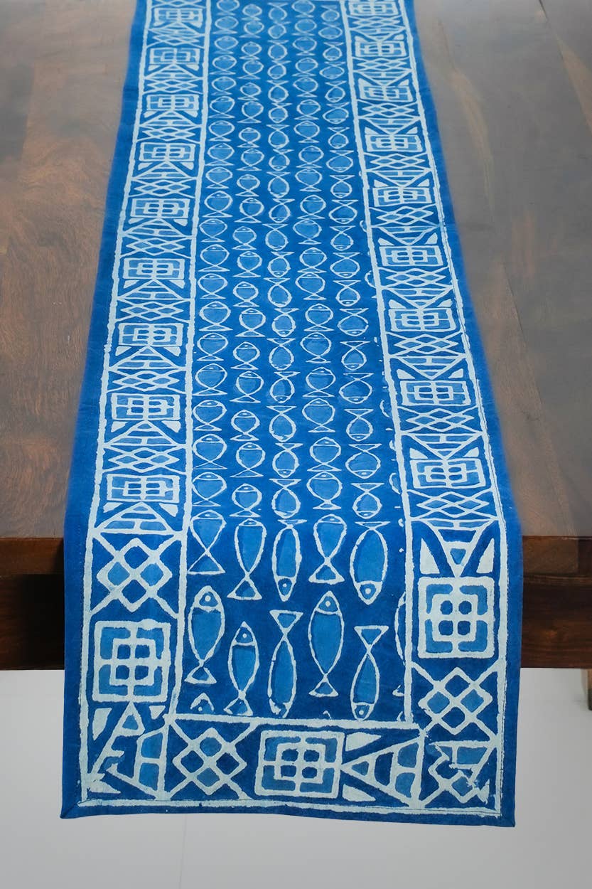 Indigo Fish Table Runner