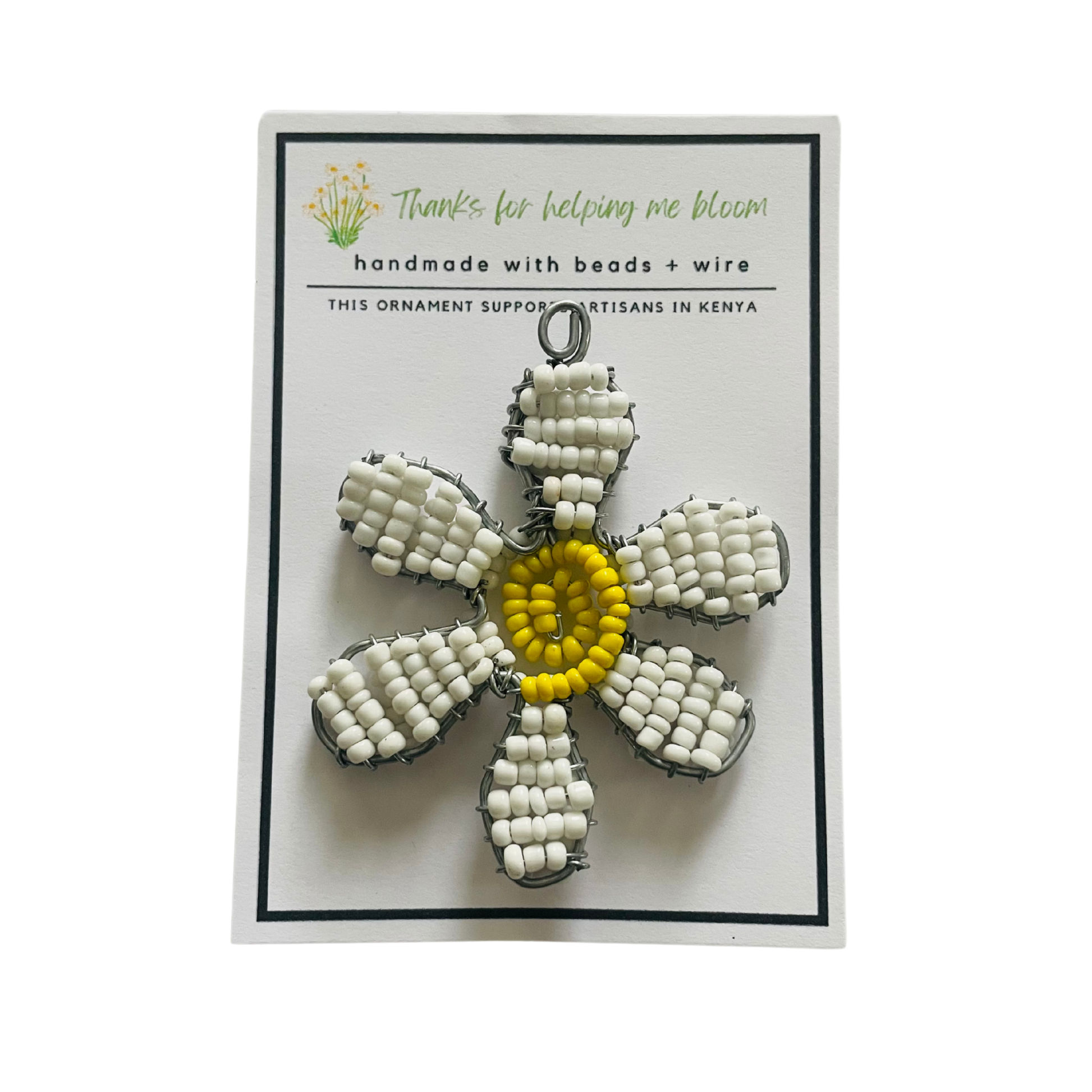 Handmade in Kenya from wire and beads. Each purchase supports the artisan who handcrafted the piece. Each ornament comes with a string and display tag. These are handmade items so each one is similar but not exact.
