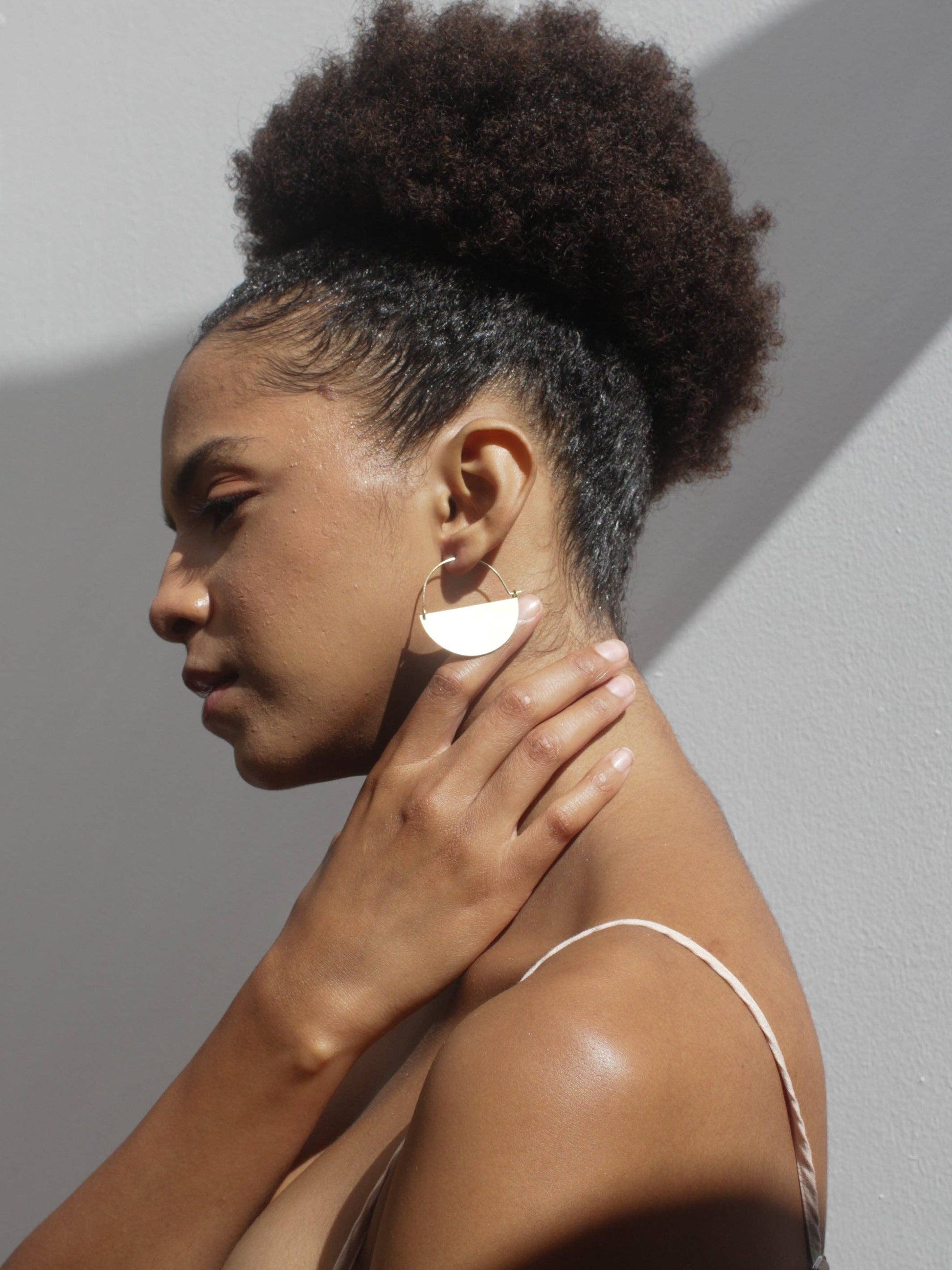 Meet the new and improved version of our all-time bestseller Half Moon Earrings! Now in a matte gold finish! These classic earrings are lightweight and chic and can be dressed up or down. Available in 3 sizes and also in silver.