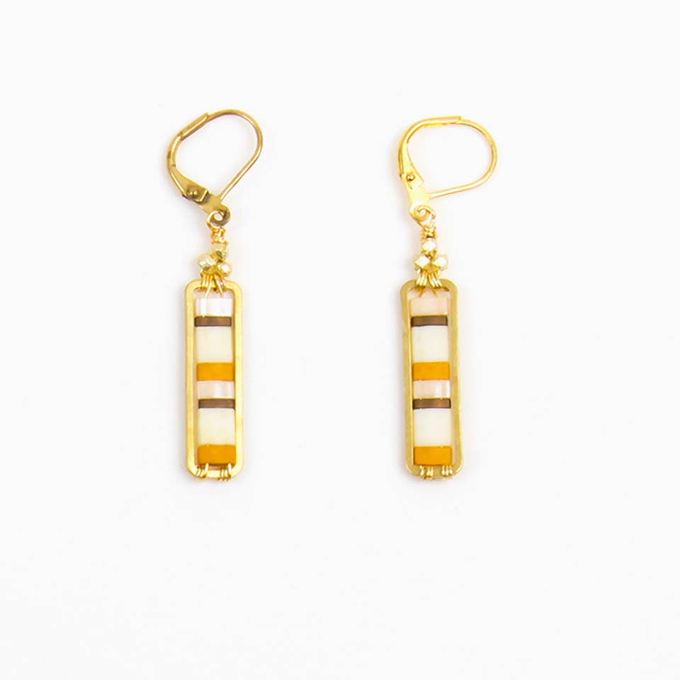 The miyuki colorblock dangle earrings are handmade in a fair trade workshop in Guatemala.