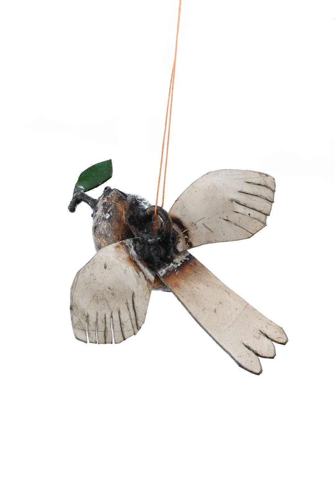 Zimbabwean artisans transform discarded metal into these sweet white dove ornaments. Each dove gently holds a green leaf in its beak.