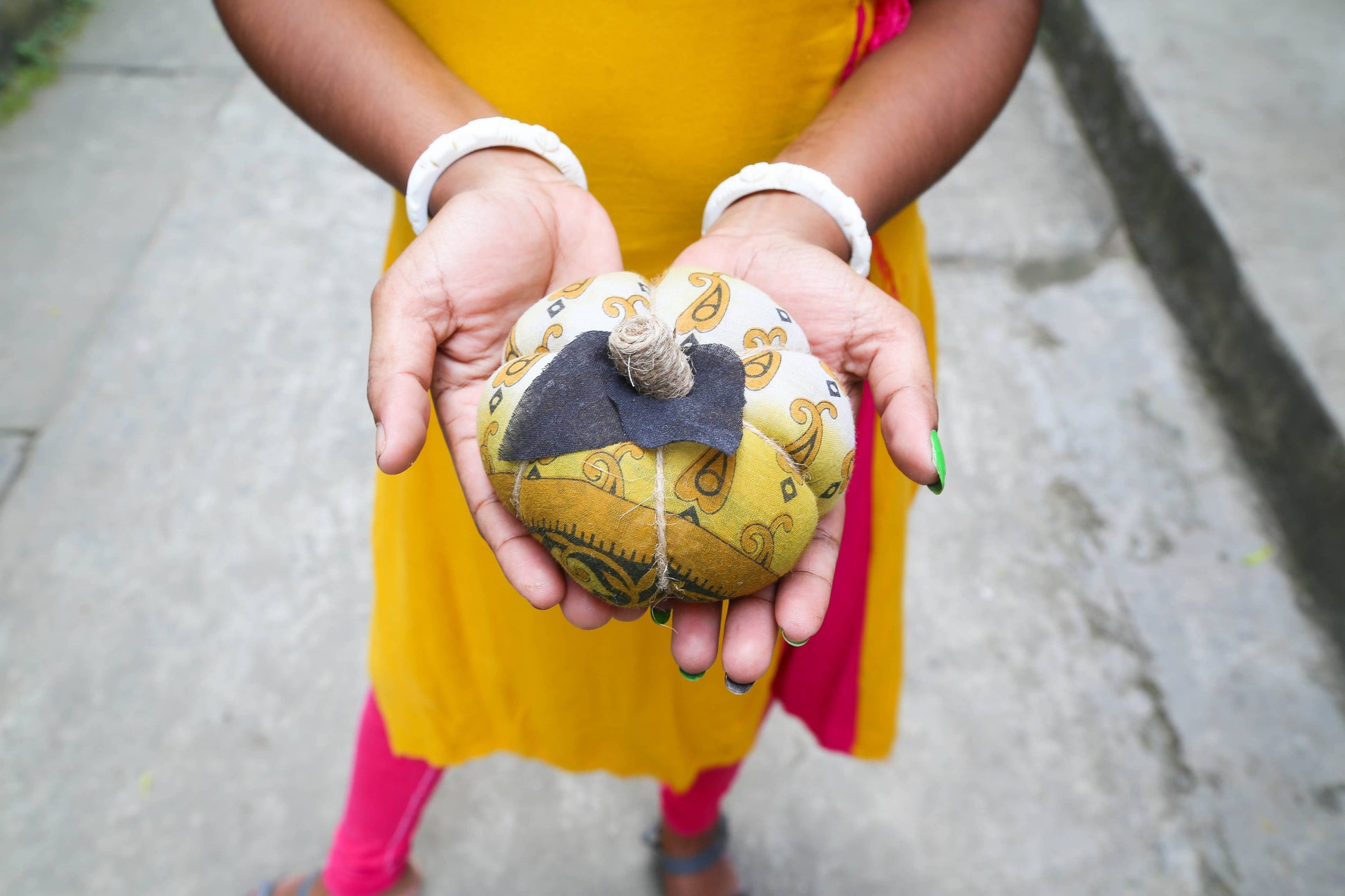 Enhance your fall decor with our charming Medium Saree Pumpkin! Handmade from recycled saree fabric, this pumpkin adds a vibrant, eco-friendly touch to any space. Perfect for displaying on your table, shelf, or mantel, it brings a unique, colorful vibe to your autumn season. Each pumpkin is one-of-a-kind, showcasing the beauty and creativity of recycled saree material. Add warmth and personality to your home with this delightful fall accent!