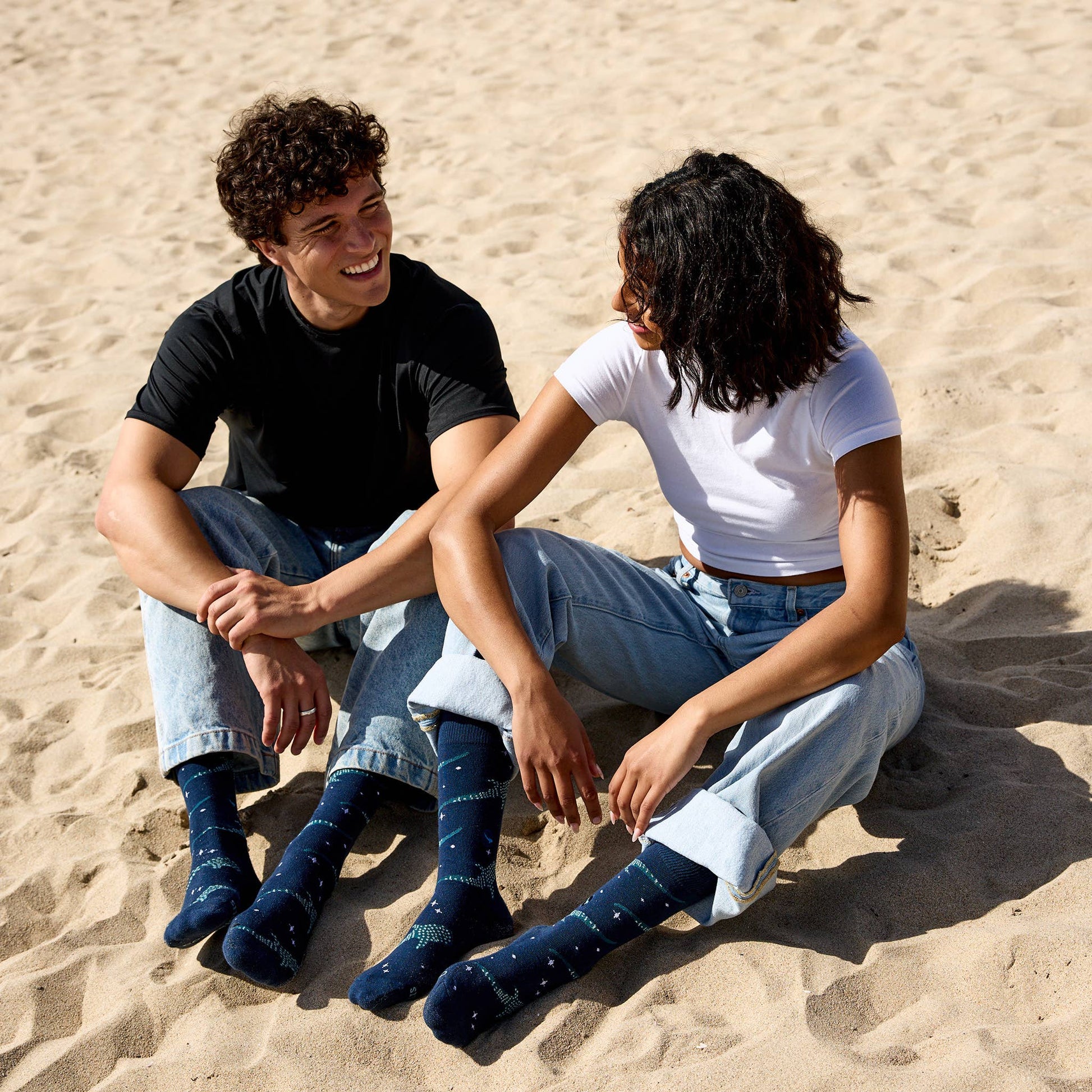Take the plunge with a pair giving love to a big fish with big style: the whale shark! Inspired by the ocean’s gentle giants, this navy pair makes colossal waves for whale shark conservation.