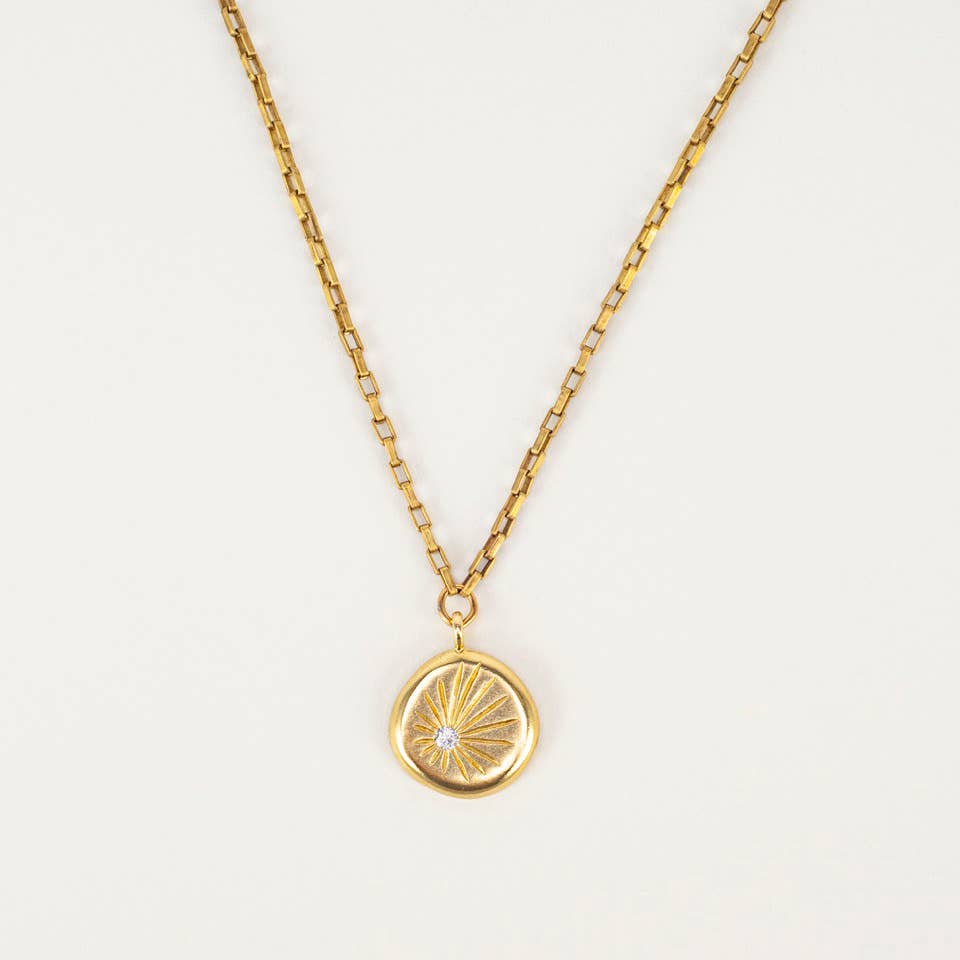 Adjustable brass chain, 16 to 17.5 inches, with brass lobster clasp.