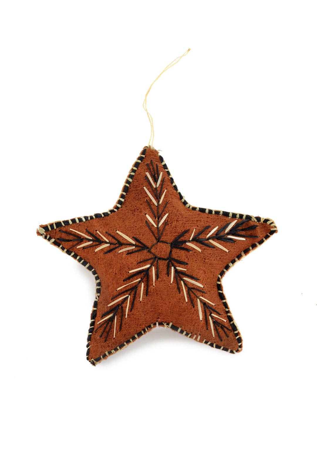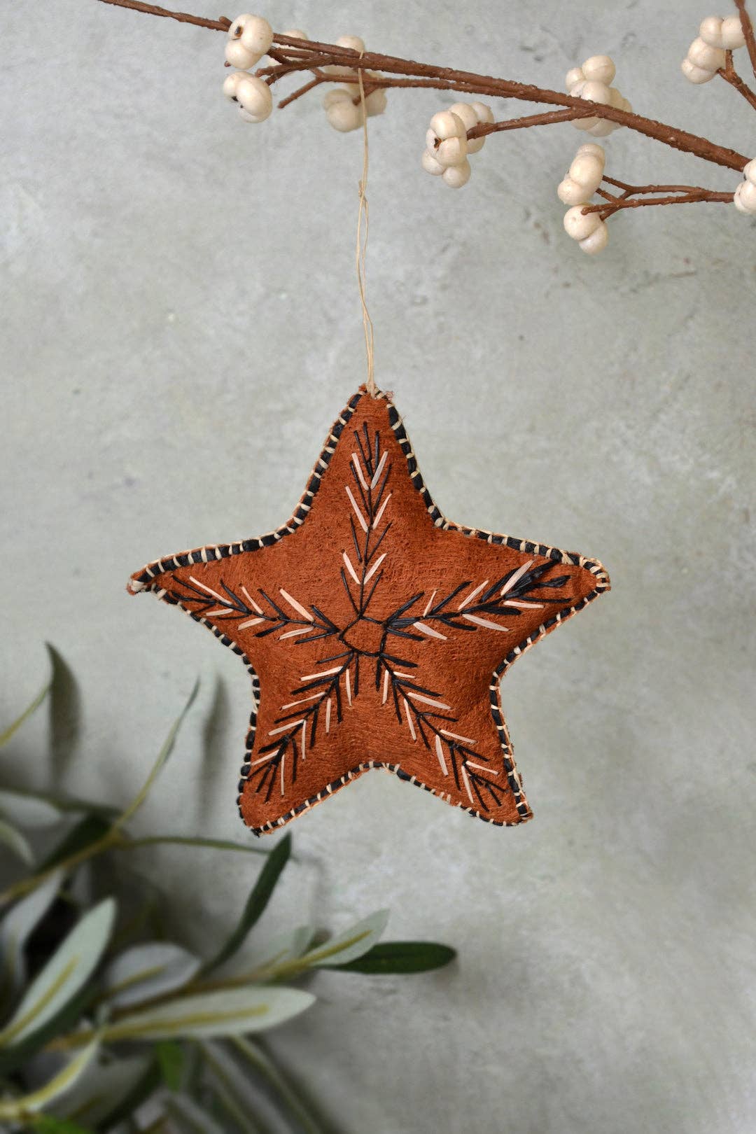 Ugandan artisans hand stitch this lovely ornament from traditional cloth made from the inner bark of the Mutuba tree, then embellish with embroidered black and white raffia details. Perfect for the holiday tree or in the home year-round, each ornament includes a loop of raffia for hanging.